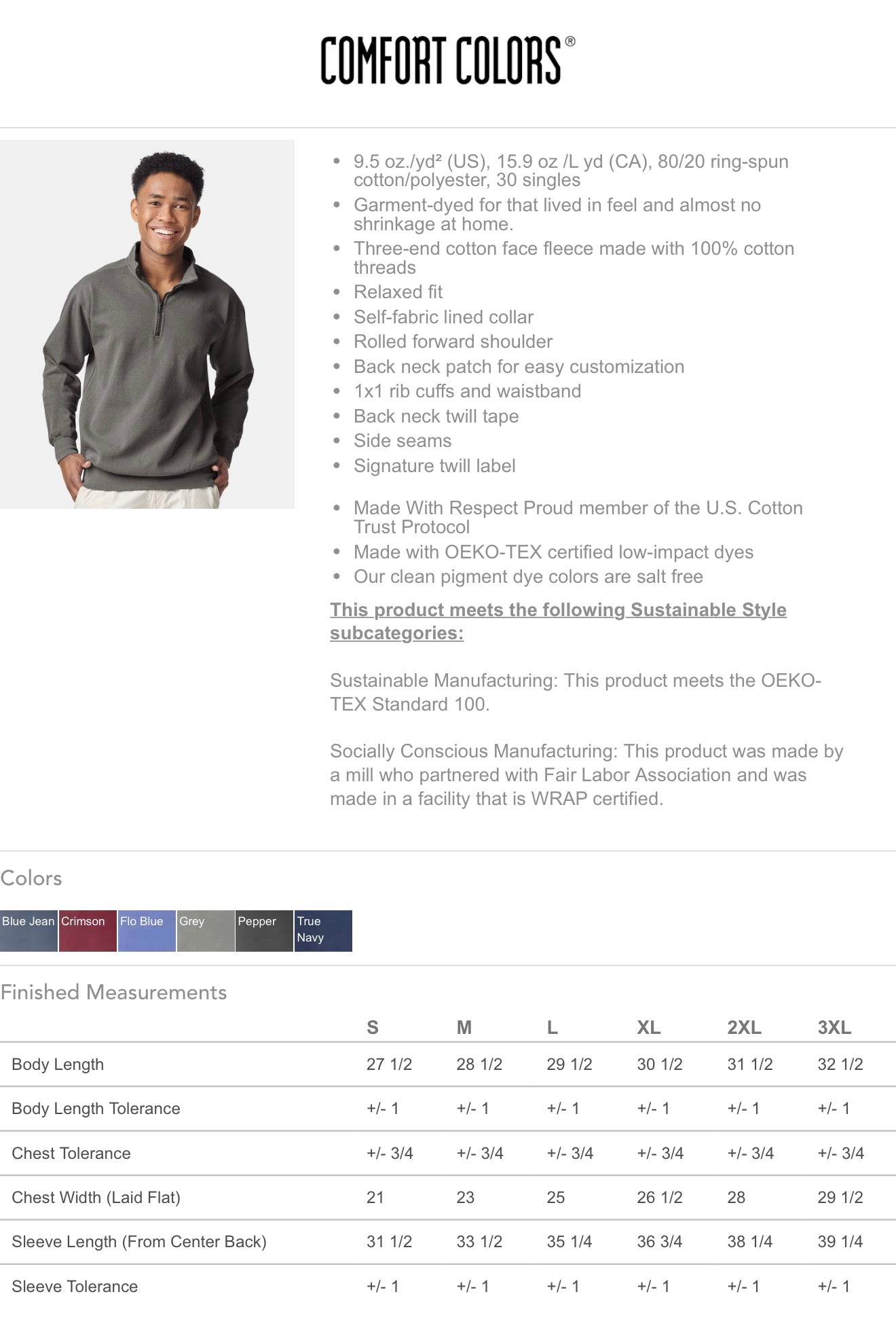 Please leave color for quarter zip in the notes at checkout